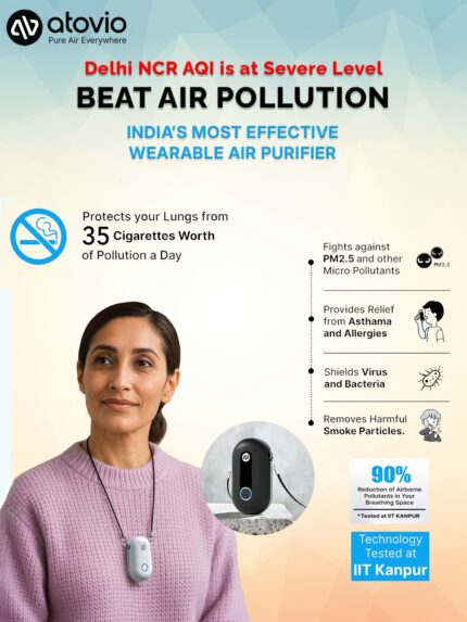 Atovio Pebble- India’s Most Effective Wearable Air Purifier (Moonlight Black)