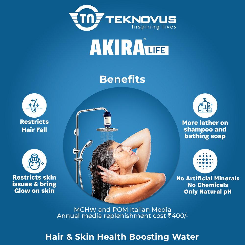 - No aritificial minerals and silifos balls are used in Akira Life. These balls enhances the pH level of water to undesirable levels and limits the efficacy in Hair & Skin protection.