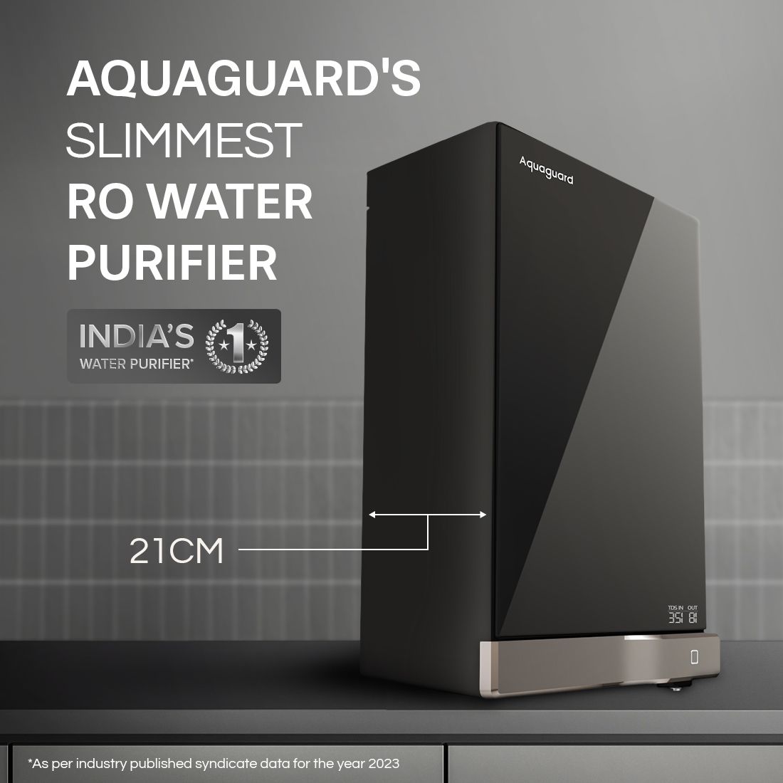 - Slimmest-ever RO Water Purifier – Aquaguard presents its slimmest RO water purifier yet, with a compact depth of just 21 cm.