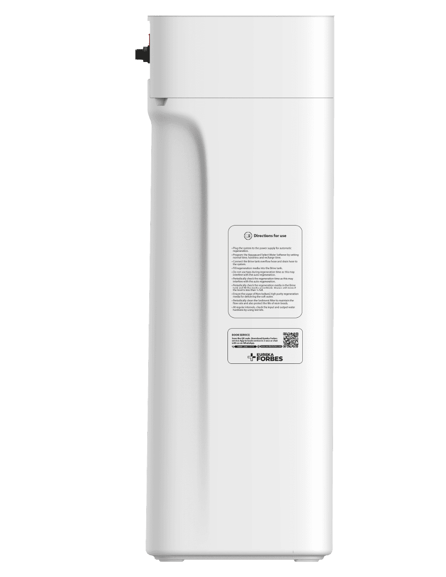 Fully automatic water softener for independent homes with advanced ion-exchange technology to soften water with a hardness of up to 1850 ppm. Get rid of hard water which may cause hair fall, dry itchy skin, and stains on sinks, bathroom fittings, and appliances, and save on detergents and soaps.