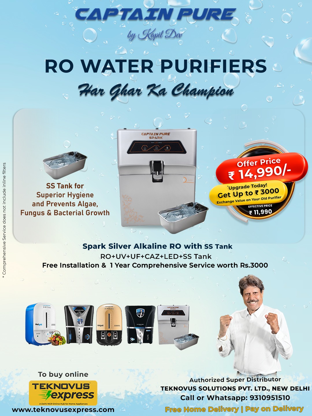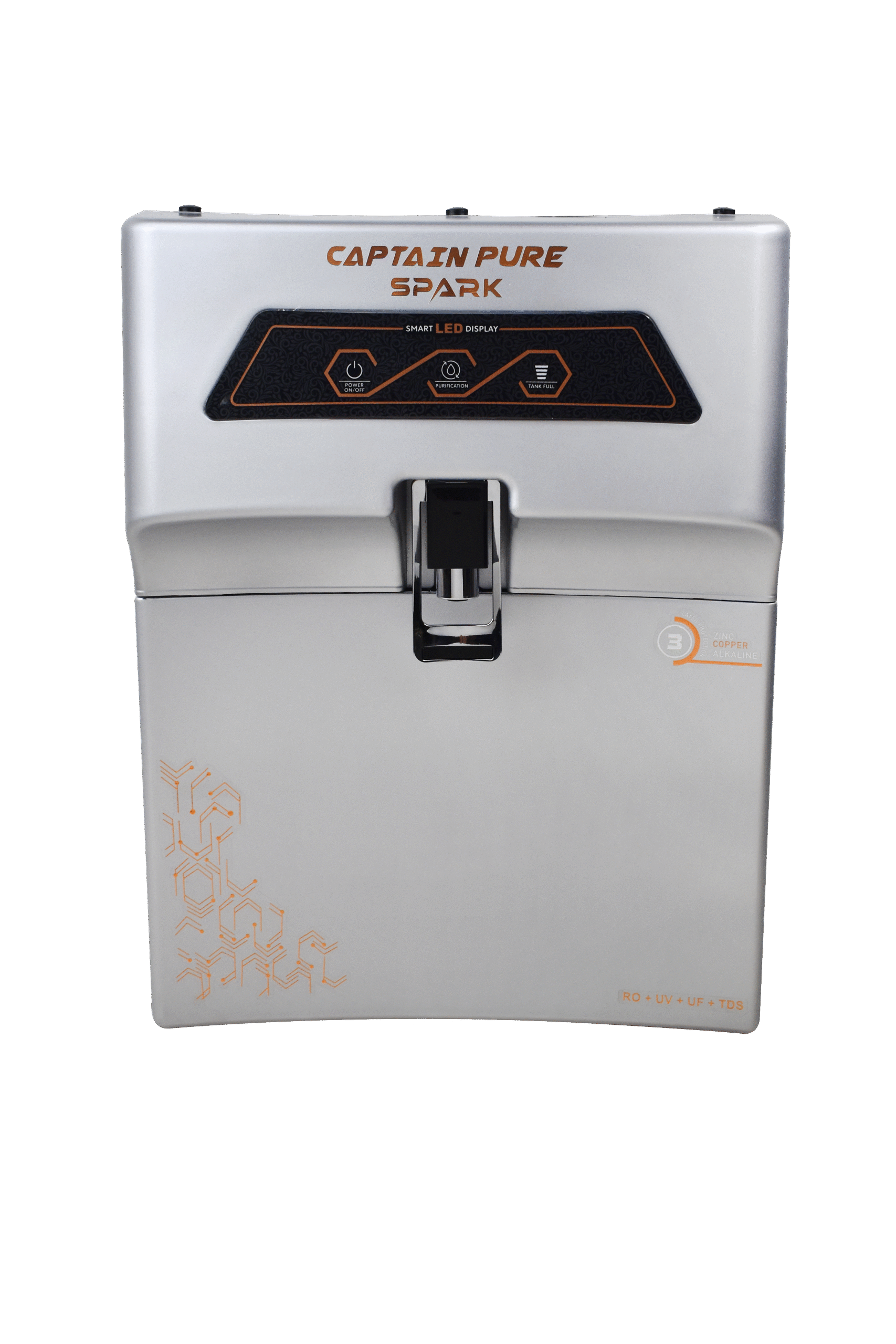 Captain Pure Spark Silver RO Water purifier, 8L, RO + UV + UF + TDS + Copper + Alkaline