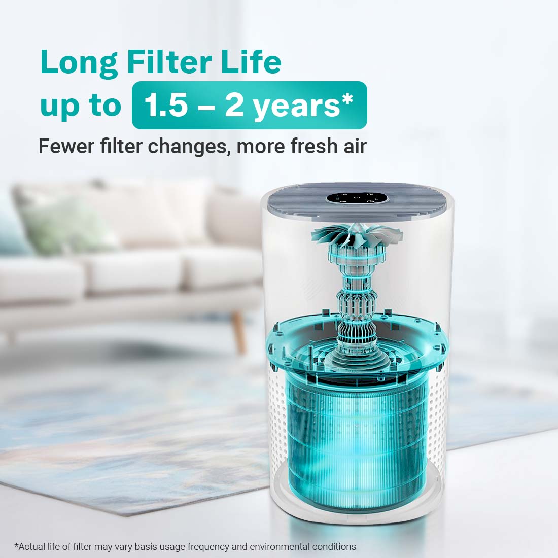 Forbes Air Purifier 230 with Surround 360° Air Intake Technology along with an integrated True HEPA Grade 13 filter provides purified air that ensures a healthier environment. Ideal for Living Room up to 310 sq. ft.