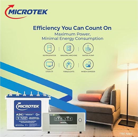 Be the first to review “Microtek Inverter & Battery Combo | Energy Saver New 1025 (900VA) 12V Pure Digital Wave Inverter with M1603624TT 150Ah/12V Tall Tubular Battery | Energy-Efficient Power Backup for Home, Office & Shops” Cancel reply