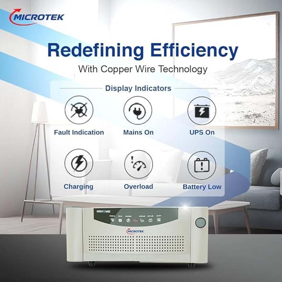 Microtek Smart Hybrid 875 Digital & Sinewave Technologies 725VA/580 Watts Inverter, Supports 1 Battery with 3-Year Onsite Warranty for Home, Office & Shops