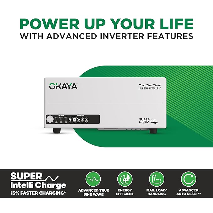 • Okaya Advanced Home UPS (ATSW 1175 12V) with Advanced True Sine Wave technology is a promise of pure power, energy efficiency, and superior performance with the care your home appliances.