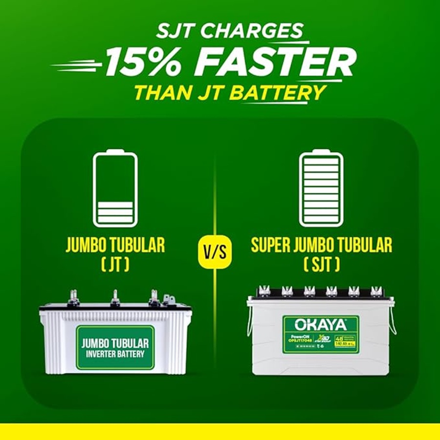 OKAYA PowerON OPSJT14048 110Ah Super Jumbo Tubular Advanced Battery for Home, Office & Shops | Robust & Compact Design | Extra Backup (XBD Technology) | 48 Months Total Warranty